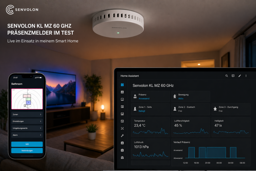 Ein Smart Home ist nur so gut wie die Sensoren, auf denen es basiert. Genau das merkt man spätestens dann, wenn das Licht ausgeht, obwohl man noch auf dem Sofa sitzt, der Bewegungsmelder einen am Schreibtisch nicht mehr erkennt oder Automationen zwar technisch funktionieren, sich im Alltag aber trotzdem falsch anfühlen. Mit dem Senvolon Präsenzmelder KL MZ 60 GHz habe ich genau dieses Problem neu bewertet. Ich habe den Sensor in Home Assistant eingebunden, über MQTT eingerichtet und im Alltag getestet. Das Ergebnis: Dieser Präsenzmelder ist kein einfacher Bewegungsmelder, sondern einer der wichtigsten Bausteine für ein wirklich intelligentes Smart Home.